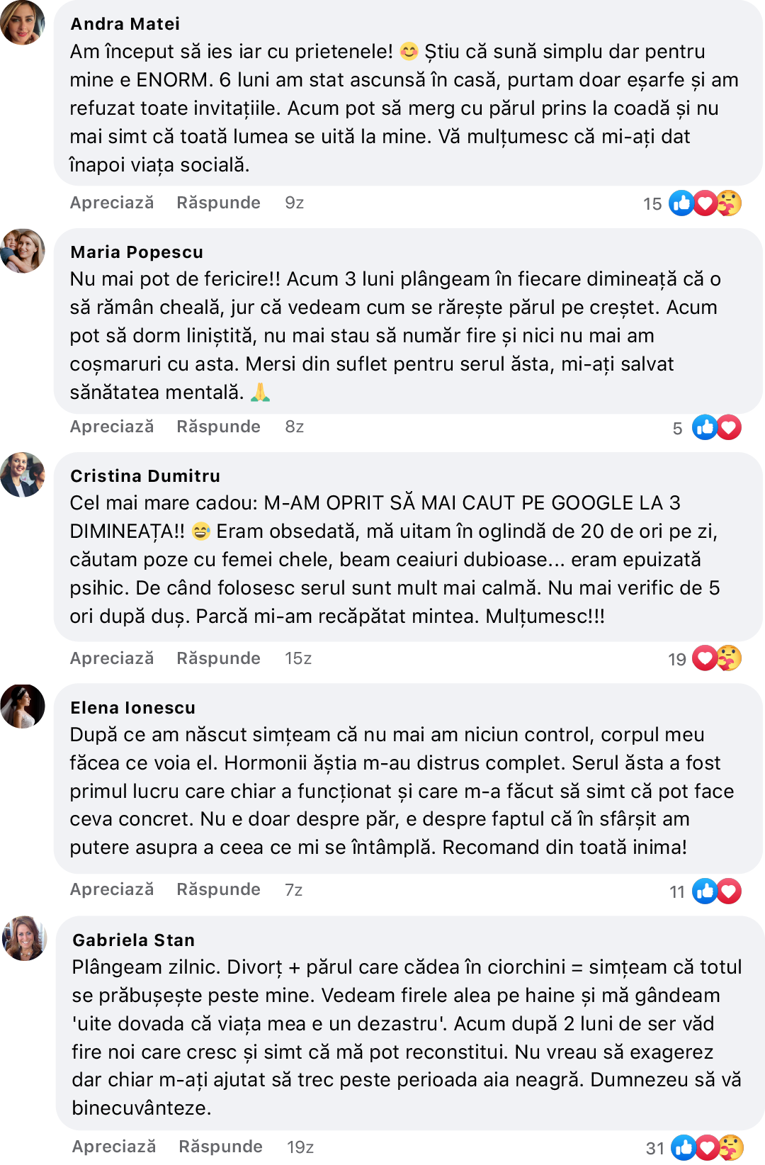 Restaurăm ceea ce sarcina, stresul și viața ți-au luat—părul des și încrederea în tine—fără iritații, fără substanțe chimice agresive, doar rezultate vizibile pe care le poți vedea crescând.