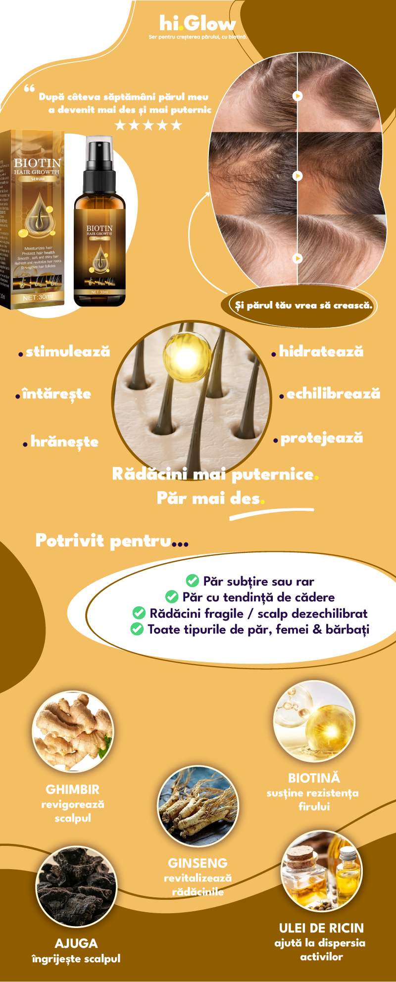 Serumul livrează biotina concentrată exact unde foliculii o așteaptă—direct la rădăcină, la scalp.