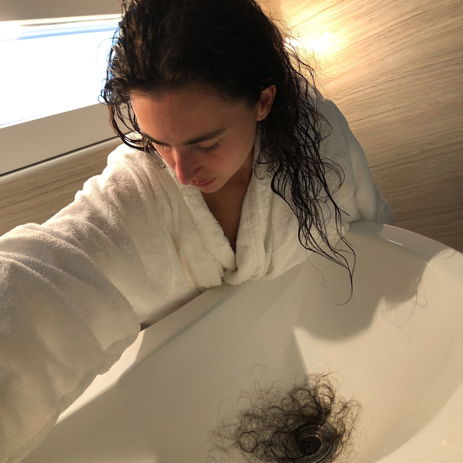 Când te ștergi cu prosopul—fire peste tot. Pe umeri. Pe podea. În scurgere.